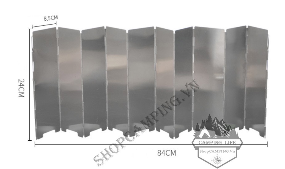 Tấm chắn gió 10 miếng size xl 24cm gấp gọn, tấm che gió bếp cắm trại, du lịch, dã ngoại có hộp đựng Camping VietNam